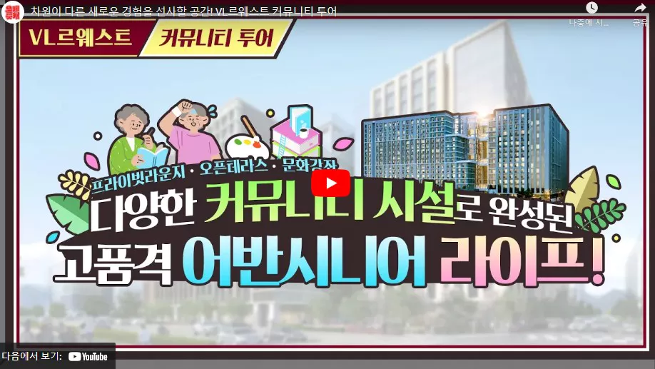 최고급 실버타운을 표방하는 만큼 시설 또한 남다른데요, VL르웨스트 홍보관을 직접 방문하고 살펴보는 것을 추천합니다.