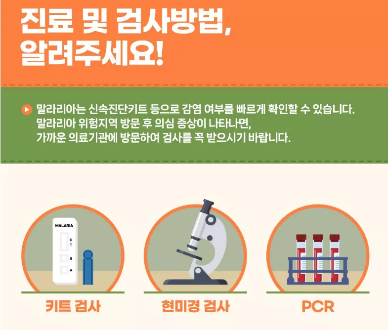 또한, 말라리아가 유행하는 지역에서 돌아온 후에는 의심 증상이 나타날 때 즉시 의료기관을 방문하여 검사를 받는 것이 좋습니다.