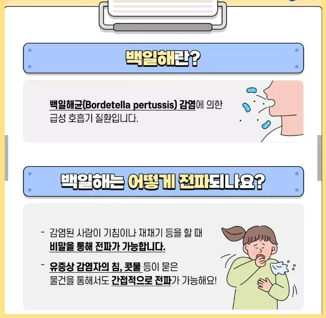 2024년 들어 백일해 환자가 급증하면서 방역 당국이 주의를 당부하고 나섰습니다. 특히, 1세 미만 영아의 경우 백일해 예방접종을 제때 완료하는 것이 무엇보다 중요한데요, 백일해의 현황과 주요 원인, 예방 방법 알아보고 예방접종 확인하는 방법 정리합니다.