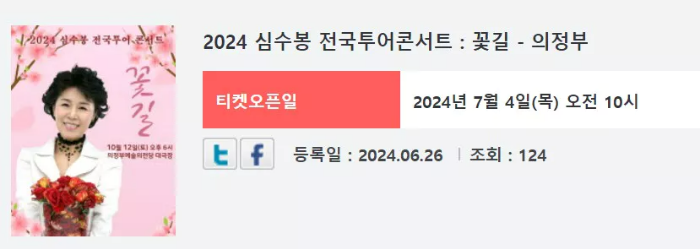 심수봉 님의 이번 전국투어 콘서트 "꽃길"은 팬들에게 특별한 음악적 경험을 선사할 예정입니다. 인터파크를 통해 티켓을 예매할 수 있으며, 각 공연의 좌석은 빠르게 마감되고 있습니다.