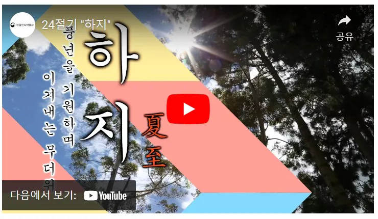 낮의 길이가 가장 짧은 날은 동지로 겨울이 시작되고, 가장 긴 날은 하지로 여름이 시작되는 절기입니다.
