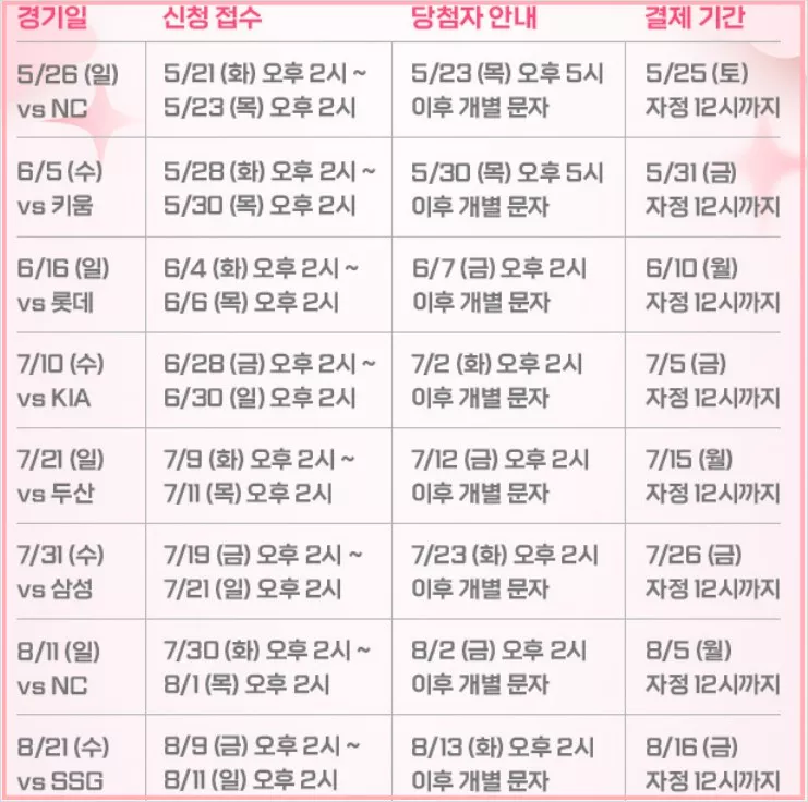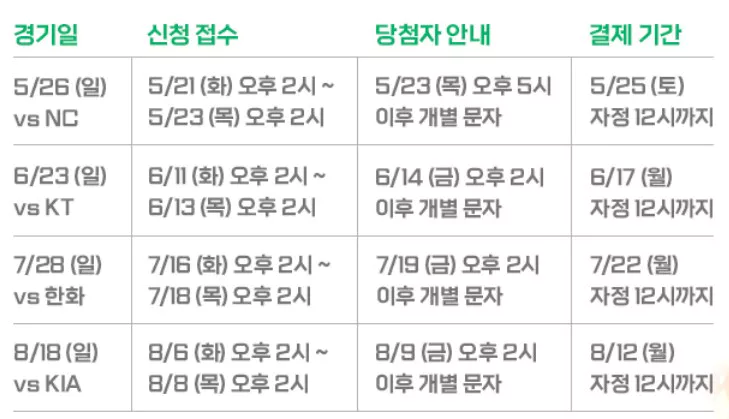 6월 16일 롯데와의 경기부터 신청할 수 있네요.